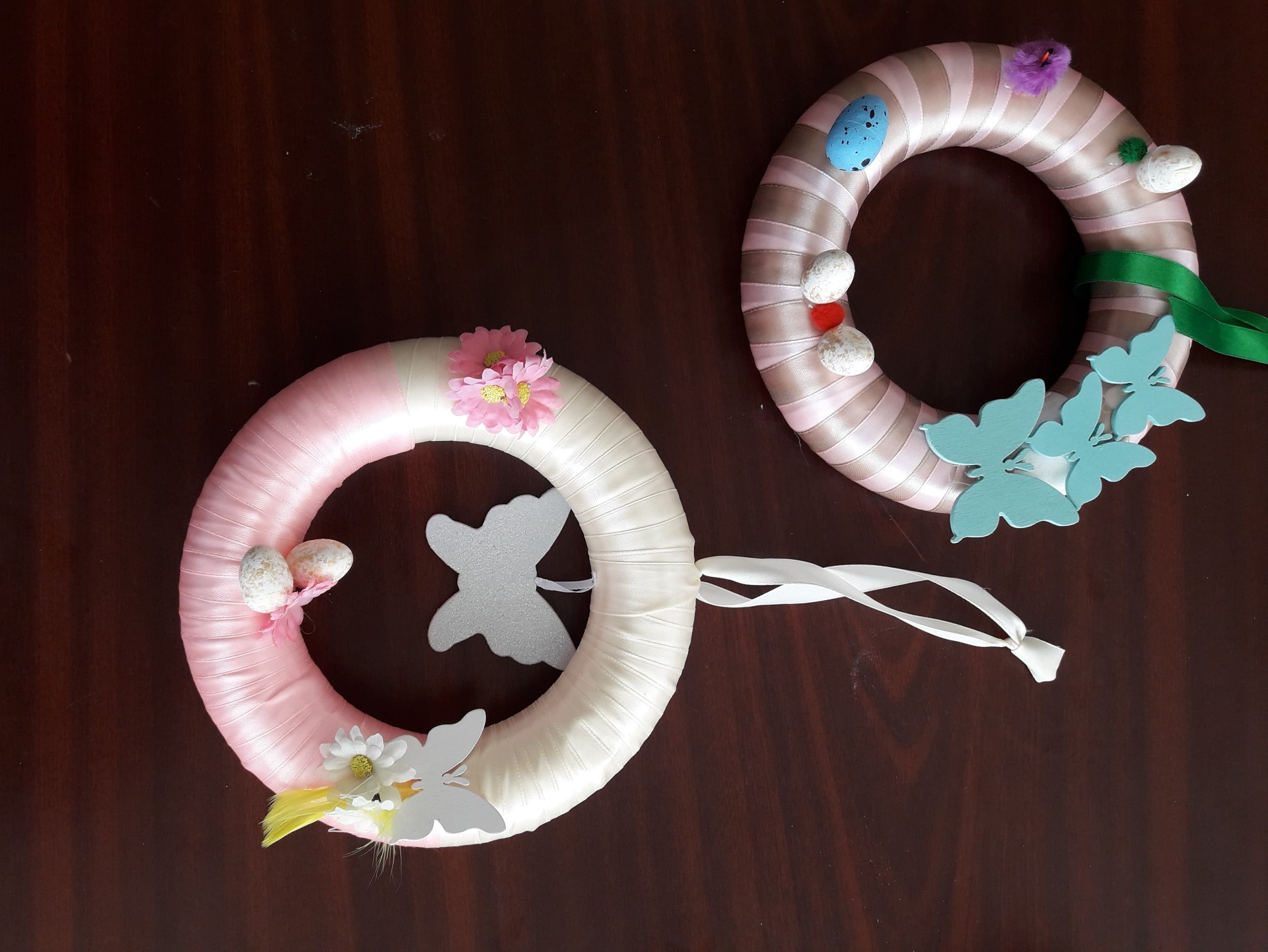 Letos jsme se rozhodli, že si vyrobíme jenom jeden výrobek - jarní věneček. Výroba nás bavila. Bavilo nás i starat se o svoje rodiče, uvařit jim kávičku nebo čaj, ?.)