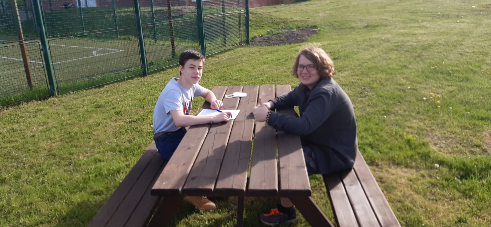 Jelikož již můžeme chodit do školy (tedy zatím jen prezenčně), využili jsme hezkého počasí a hodinu zeměpisu si dali na zahradě školy. Pracovali jsme ve dvojicích a doplňovali tajenku a informace o Ústeckém kraji. Za odměnu jsme si na konci hodiny zahráli - "Cukr, káva, limonáda..."