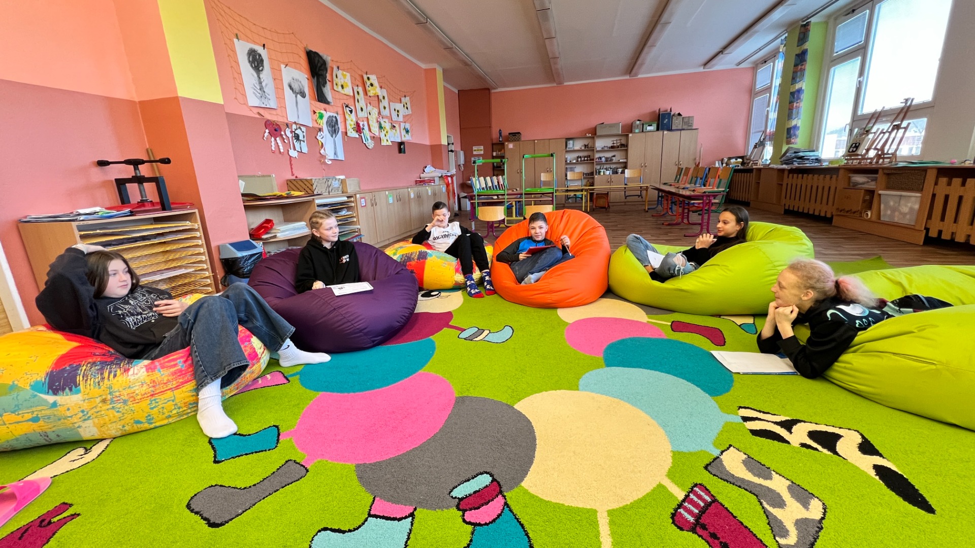 Ve slohu během tvůrčího psaní rádi píšeme příběhy. Tentokrát jsem zvolili sci-fi téma. Začátek příběhu byl pro všechny stejný, naším úkolem bylo příběh dokončit a napsat dvě varianty: šťastný konec a konec končící velkou katastrofou. Všichni se na chvíli stali spisovateli a zadání se zhostili s velkou parádou. Kromě samotného tvůrčího psaní nás zajímá, jak píší ostatní a jakou fantazii mají naši spolužáci, proto se navzájem hodnotíme a nad všemi příběhy diskutujeme (oceňujeme nápady; sdělujeme, co nám přišlo zajímavé; a také druhým posíláme rady na příště). Tyto hodiny jsou vždy fajn a všechny baví!