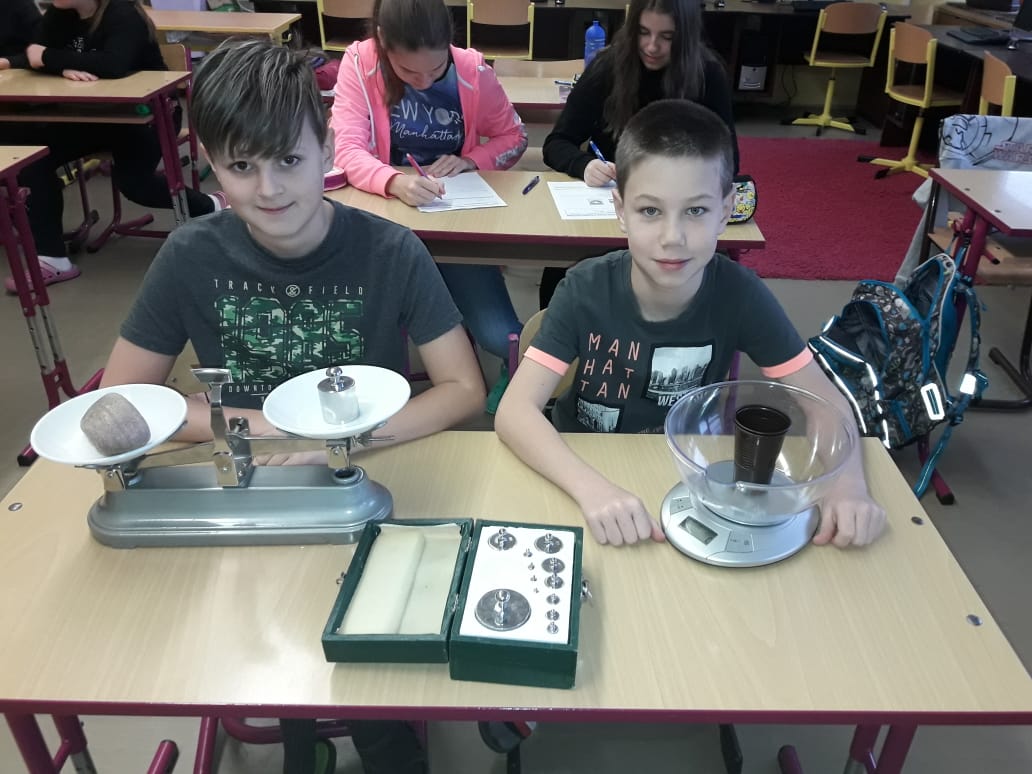 Ve fyzice jsme si vyzkoušeli první laboratorní práci zaměřenou na měření hmotnosti. Pracovali jsme s digitální váhou, rovnoramennou váhou. Bavilo nás používat závaží a zkoušet si zvážit různá tělesa. Fyzika nás prostě baví.