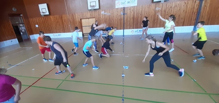 První hodinu TV jsme cvičili s novinami, nejdříve jsme s nimi běhali a museli je udržet třeba na hrudníku nebo na břiše, poté se po nich přesouvali po tělocvičně a nakonec se s nimi koulovali.