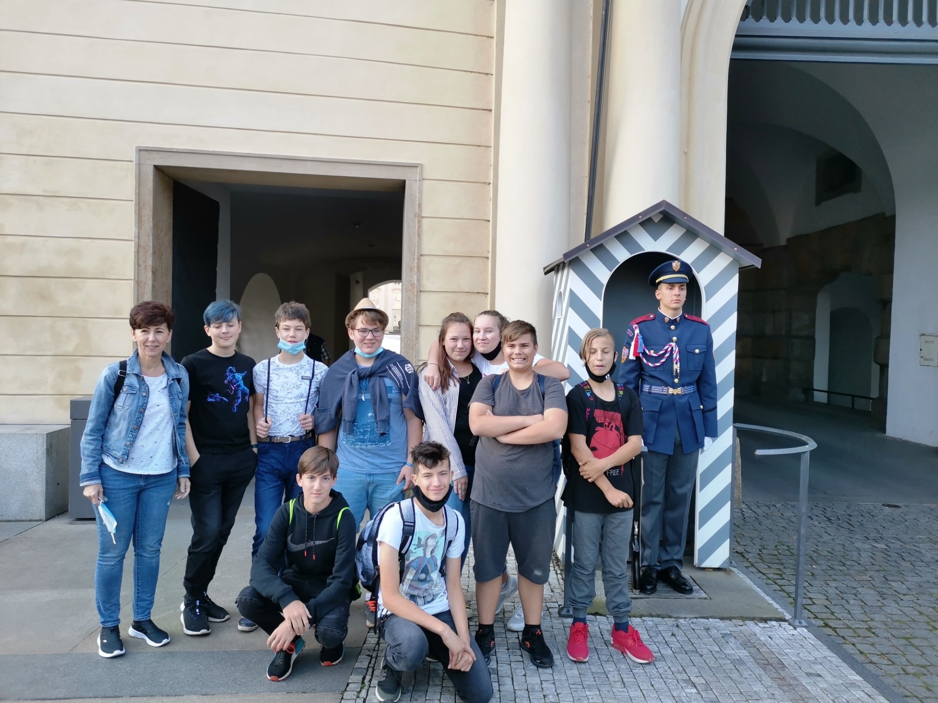 Ve středu 23. září jsme v rámci projektového dne navštívili Pražský hrad. Naše návštěva a povídání s průvodcem začalo na nádvoří, kde kromě nás a policejní ochrany téměř nikdo nebyl. Dozvěděli jsme se, že byl Pražský hrad založen pravděpodobně kolem roku 880 knížetem Bořivojem. Dále, kdy začala výstavba Katedrály sv. Víta, kteří významní umělci se podíleli na její výstavbě, výzdobě apod. Také jsme navštívili Vladislavský sál, prohlédli si repliky korunovačních klenotů a zjistili, jak se pozná, že je pan prezident v ČR. Návštěvu jsme zakončili prohlídkou domů ve Zlaté uličce.